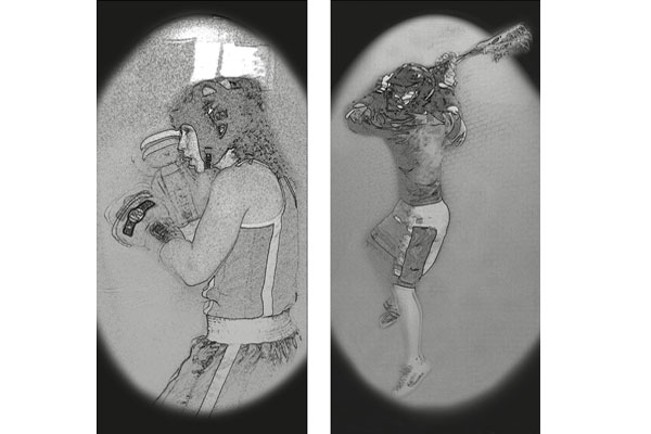 The Activa Sportsplex art concept is based on literal and abstract representations of the various athletic activities that are hosted by the venue. (Hockey, skating, lacrosse, track activities, boxing)