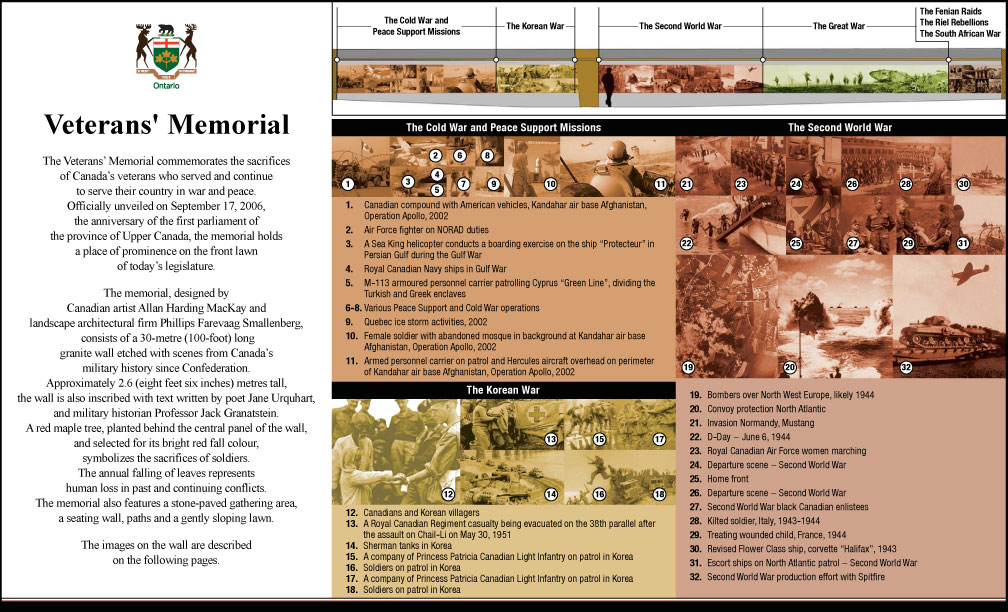 - Ontario government honours veterans with new memorial, Ministry of Government Services (www.mgs.gov.on.ca)